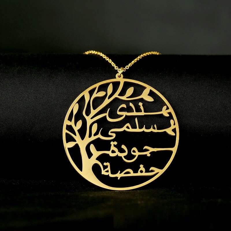 Coutume Collier Pendentif Nom Arabe Pour Les Femmes Concepteur Luxe Arbre Enfants Mere Pendentifs Musulmans Personnaliser Colliers Cadeau D Amour De La Famille De Bijoux